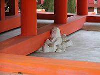 社殿の下には、漆喰で塗り固められた磐座。