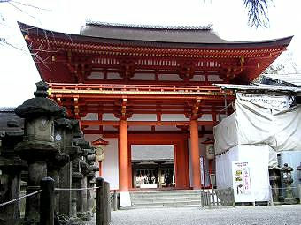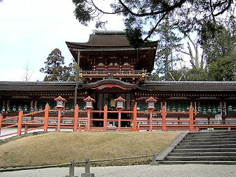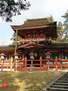 緩やかな階段を上ると、御蓋山の西麓に、南面した朱の楼門。