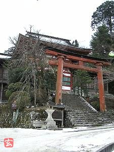 参拝は二月の初め。この辺りから道路は雪で凍結していた。