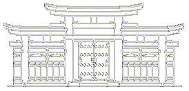 | 【筥崎鳥居】 明神鳥居の一種だが、島木が笠木と一体で、太い柱に、笠木の両端が跳ね上がった形。福岡・筥崎宮の鳥居。 |