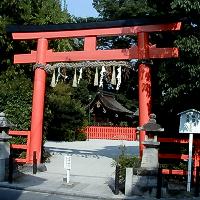 | 【京形明神】 ・笠木の下に島木があり、笠木に反りがある。 ・柱、貫、島木は朱塗り(丹塗り)。 ・笠木の鼻(両端)は斜めに切り落とし、島木も斜めに切られている。 | 京都久我神社