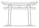【春日鳥居】 島木の上に、ずれて笠木があり、貫中央に額束がある。柱に傾斜あり。 |