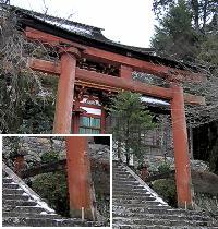 | 【愛宕両部】 ・京都愛宕神社一之鳥居の両部鳥居。 ・控柱(稚児柱)が黒塗り。 | 奈良丹生川上神社中社